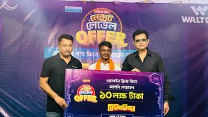 বাগেরহাটের ফকিরহাটে ওয়ালটন ফ্রিজ কিনে কুদ্দুস হাওলাদার নামে এক দিনমজুর ব্যক্তি মিলিয়নিয়ার হয়েছেন। রোববার (২৬ এপ্রিল, ২০২৬) বিকেলে ফকিরহাট বাজারে ওয়ালটন প্লাজার জাঁকজমকপূর্ণ অনুষ্ঠানের মধ্য দিয়ে কুদ্দুস হাওলাদারের হাতে ১০ লাখ টাকার চেক তুলে দেন ওয়ালটনের সিনিয়র এক্সিকিউটিভ ডিরেক্টর চিত্রনায়ক আমিন খান।এসময় ওলায়টনের চিফ ডিভিশনাল অফিসার মো: হুমায়ুন কবির, ফকিরহাট প্লাজার ম্যানেজার সজল আহমেদ সহ গন্যমান্য ব্যক্তিগণ উপস্থিত ছিলেন।