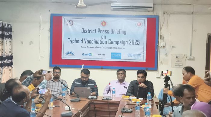 নিজস্ব প্রতিবেদক. বাগেরহাটে আগামী ১২ অক্টোবর থেকে টাইফয়েডের টিকাদান কর্মসূচি শুরু হচ্ছে।  ৯ মাস থেকে ১৫ বছর বয়সী শিশুদের এই টিকা দেয়া হবে। উপকূলীয় এই জেলায় মোট ৪ লাখ ১১