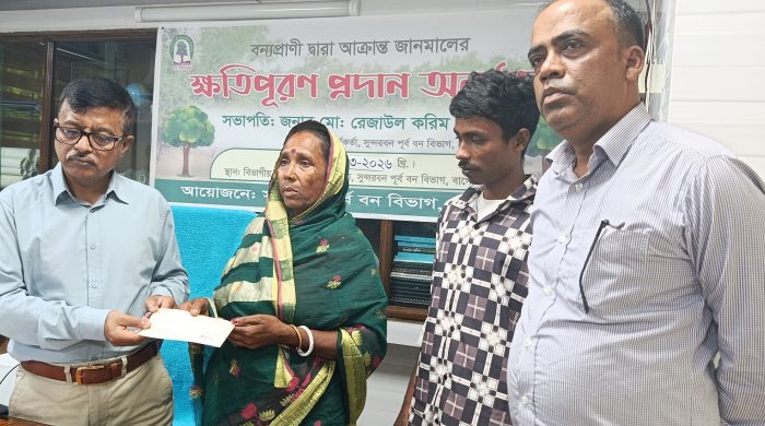 নিজস্ব প্রতিবেদক. সুন্দরবনে কুমিরের আক্রমনে নিহতের পরিবার পেল ক্ষতিপুরনের ৩ লাখ টাকার চেক। রবিবার (১৫ মার্চ) দুপুরে সুন্দরবন পূর্ব  বন বিভাগের বাগেরহাট কার্যালয়ে নিহত জেলে সুব্রত’র মা বামনী মন্ডলের হাতে